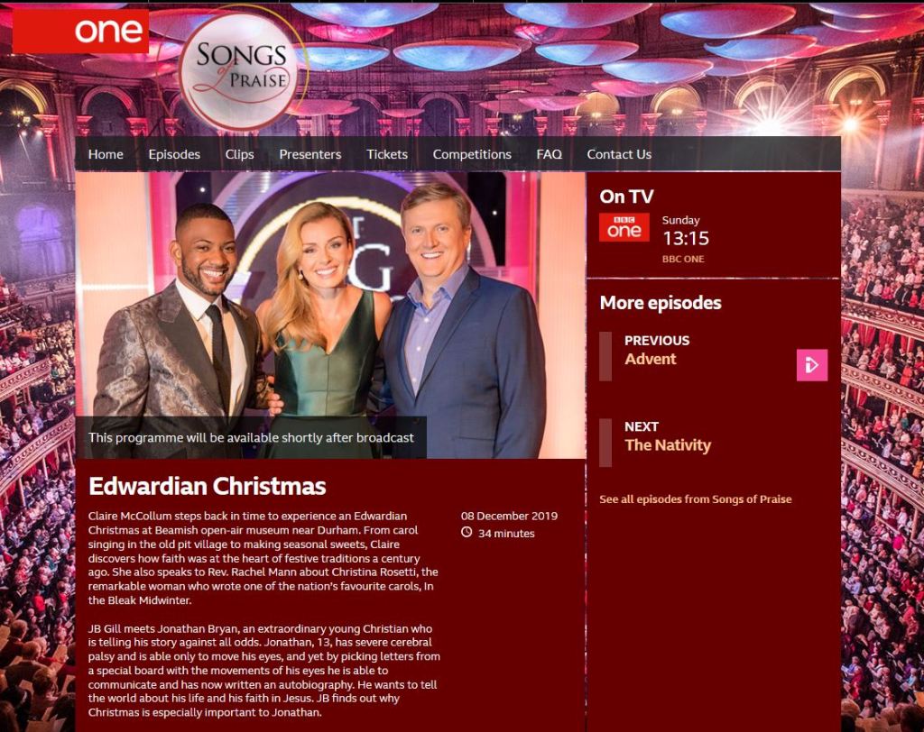 If you missed meeting me in person, you can see some of my story on Songs of Praise this Sunday at 1.15pm, and afterwards on iplayer.