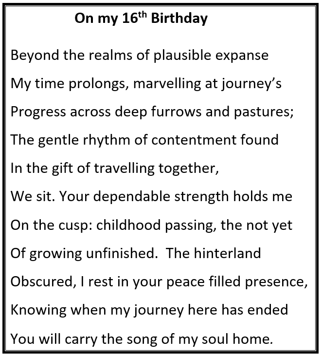 Today I am four years older than the most optimistic expert thought I would live for. At 16 I enter a no-man’s-land: too old to be considered a child, too young to be considered an adult. A good place to sit and reflect.