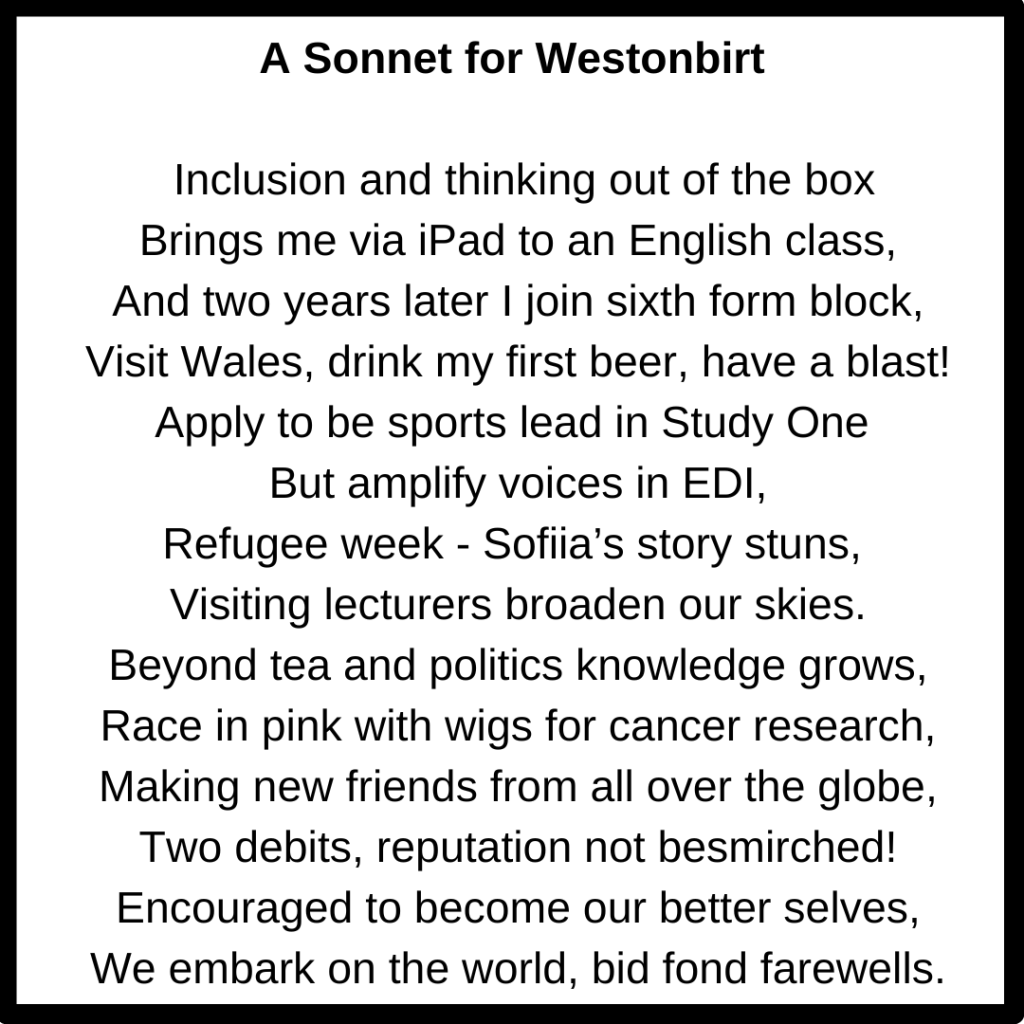 On Saturday 6th July I attended speech day at Westonbirt School; sadly this meant the end of my amazing time studying there. I will miss my great friends and teachers who made me feel very included, but am extremely excited to be starting my next journey at Bath Spa university studying creative writing.